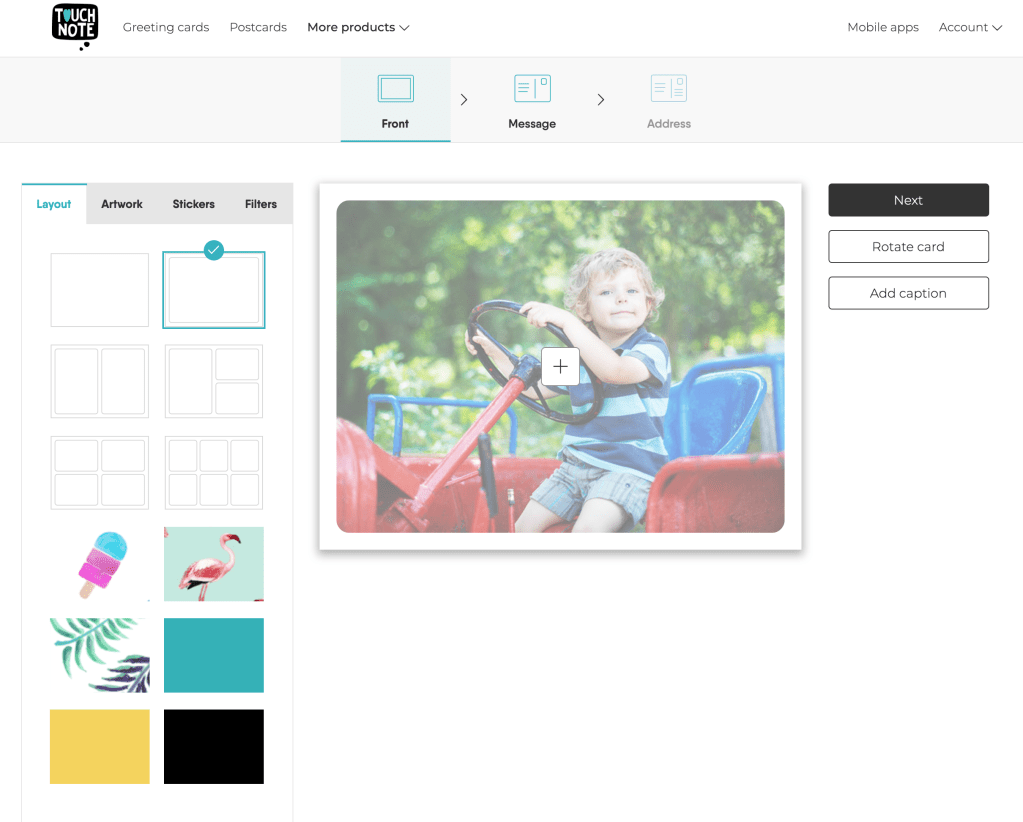 Sample postcard using Touchnote.