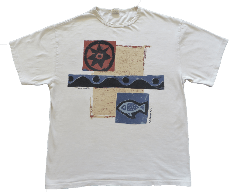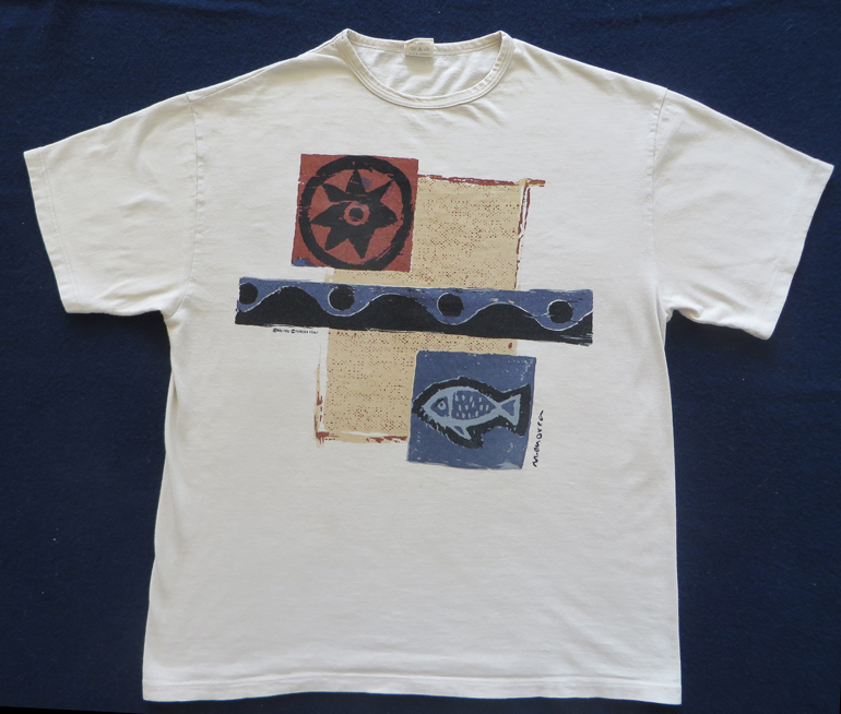 So what to do? Should I wear each t-shirt and have someone take a photo for a book of portraits? I rejected that idea quickly. I decide to simply put a large blanket on the floor and one-by-one, lay down each t-shirt and photograph it. Once I had the digital photos on my computer, I cut out the backgrounds to create .png files with only a t-shirt in each so I could do whatever backgrounds I wanted. Frankly it would have been fine to go with those photos as they were but I routinely make tasks harder than necessary. (That said, ironing was definitely more than I was willing to do!)