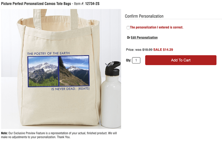 Make sure that your tote bag has the correct text, border color, and photos.