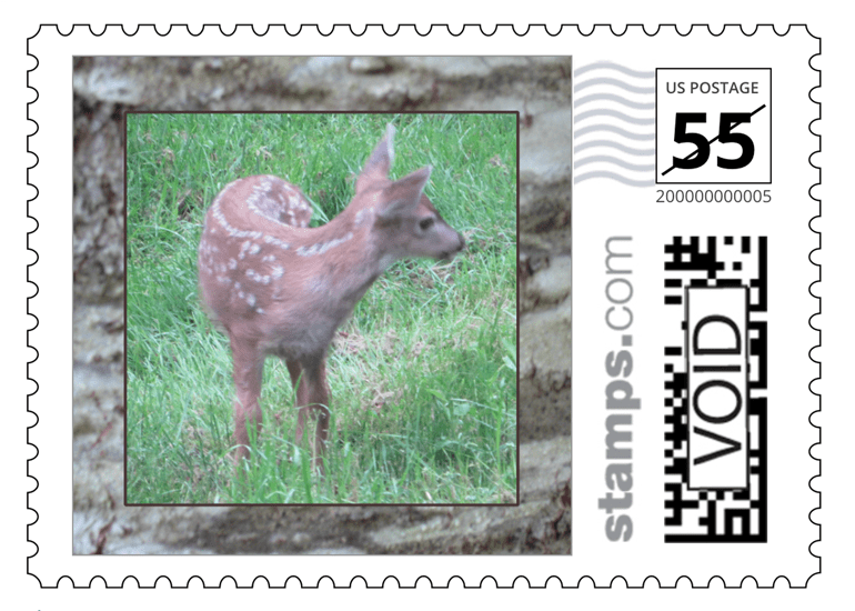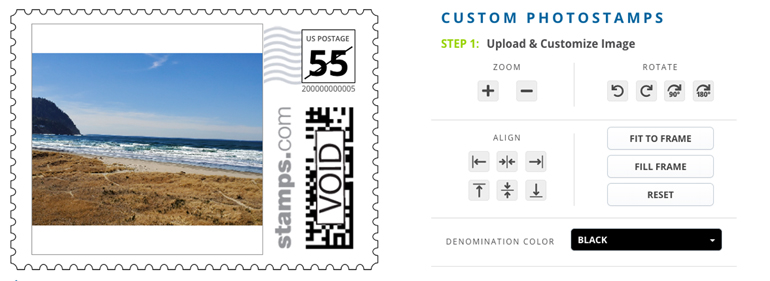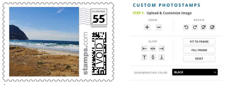 The stamps above come from PhotoStamps, a product of Stamps.com that was first launched in 2004. Each stamp is 1.92” wide by 1.39” high. The maximum image area for each stamp is 1.2” x 1.2″. Creating your stamp is very straight-forward. First click on the Create Now tab to start your personalization: