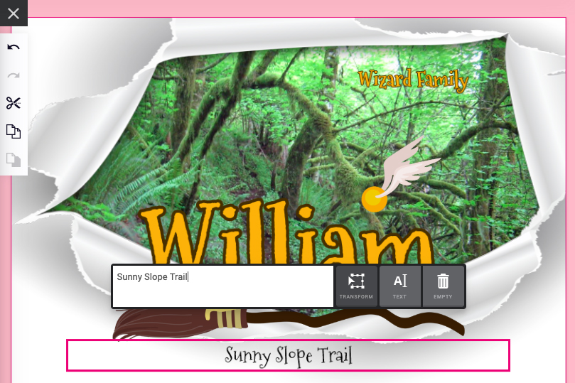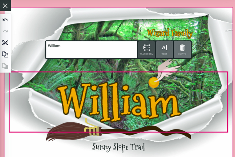 I was delighted to find not only a rectangular single photo puzzle option on Printerpix but also some designs incorporating photos. I chose “Wizard Boy White” because I liked the cutout (and the surrounding white border design that would be harder to put together!) There are lots of choices for adding, modifying, and deleting text and art.