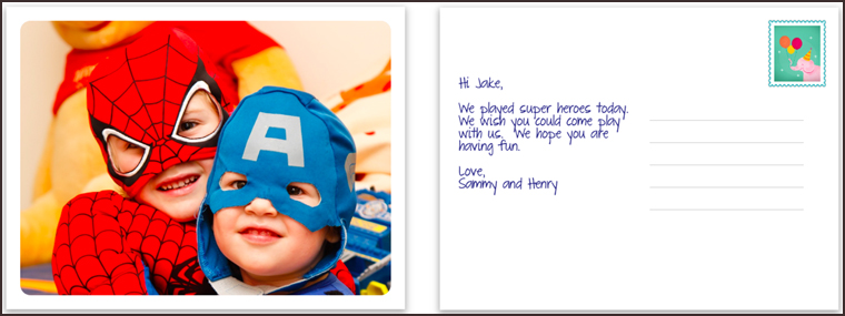 A great way to keep kids entertained and sharing with friends and family is to design and send cards. Even when there are plenty of ways to stay in touch by phone and computer, it’s always fun to receive something personal in the mail. Almost every photocrafting site has photo cards, but a quick and easy option is from Touchnote.com. We explained it in some detail in our first post but now turn it into a stay-at-home project. Let the kids help pose for a photo and choose what they want to say.