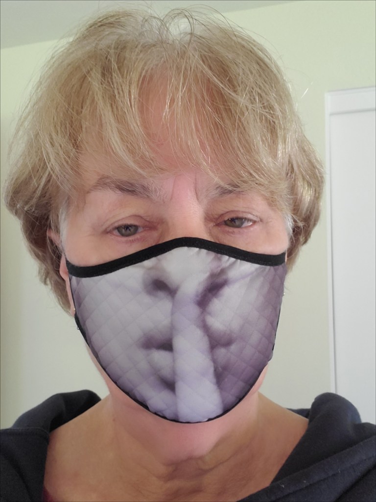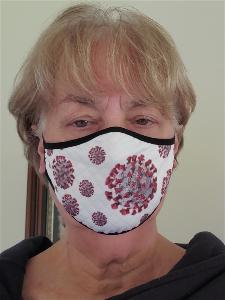 The masks I chose are a quilted material so that they’re much like having multiple layers of fabric. I like the way they fit with elastic over my ears and good coverage of my mouth and nose. However, they don’t have a fitted nose piece and, like most masks that aren’t for medical personnel, they are most useful for ensuring I don’t infect anyone else and only minimally effective in preventing contagion from others to me. (If we all wear masks in public, we are all reasonably protected.)