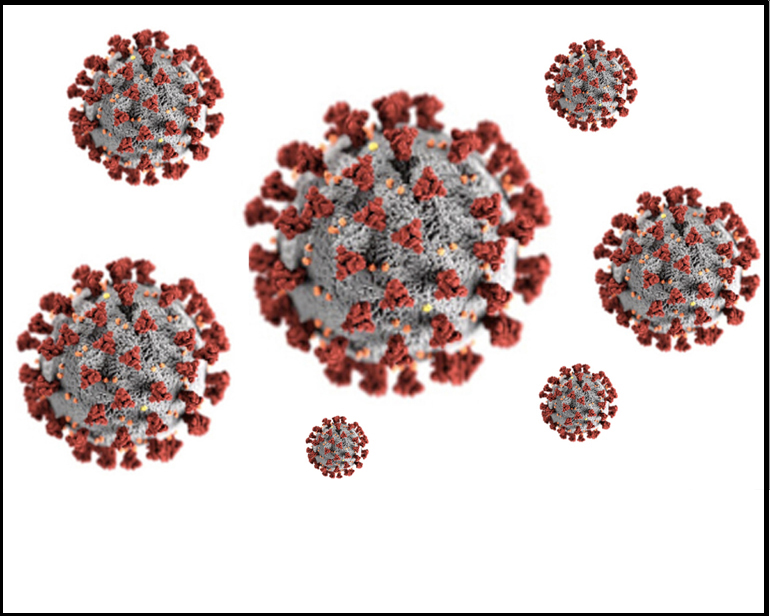 I thought it would be fun to have a mouth on my mask that covers my mouth. I found one I liked from Clipart Panda. I know I like using images from Unsplash and found another fun one there as well. For a third image, I grabbed the covid-19 symbol off the internet and used Adobe Photoshop Elements to replicate it in different sizes and scatter them across a white background.
