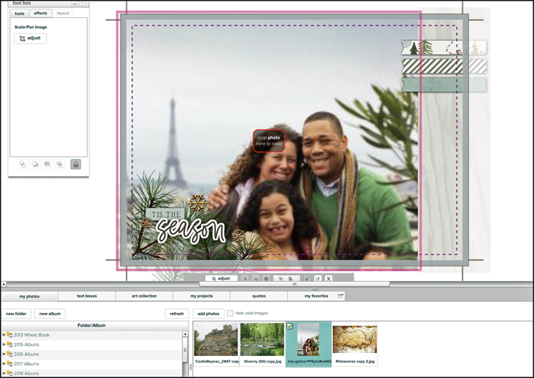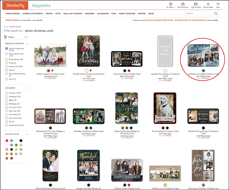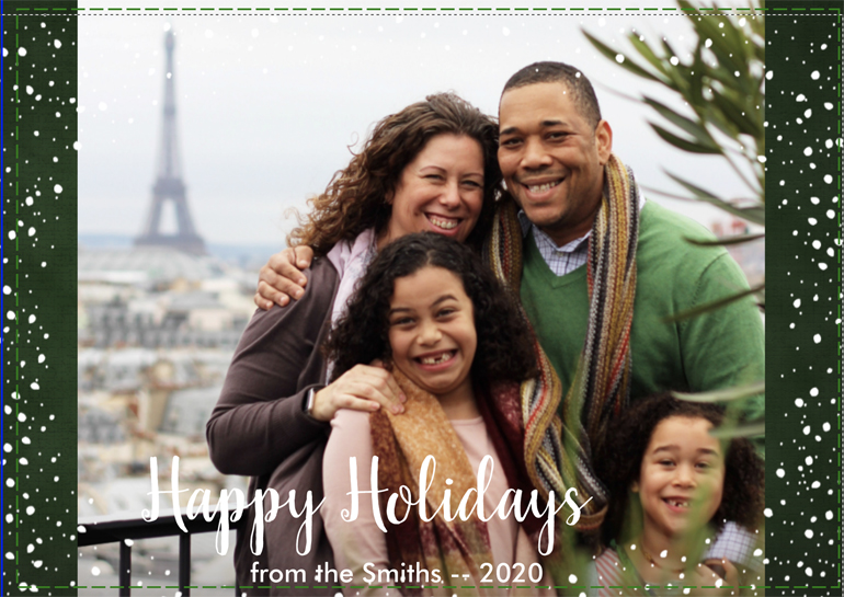 For an example, I wanted to make a holiday card that includes a family and photos from a vacation to France. I’ll work through our Five Picks: 1) Pick your photos, 2) Pick your site, 3) Pick a card type, 4) Pick a template, and 5) Pick your customization.